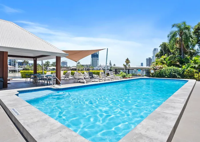 ゴールドコーストの中心に位置し、アドレナリン パークから歩いて7分の広々としたベッドルーム2室のMoorings - Hr Surfers Paradise ゴールドコーストアパートに宿泊できます。 この130m²のアパートに滞在中は、プールでくつろいだり、宿泊から250メートル離れたインフィニティ ゴールドコーストを訪れたりできます。